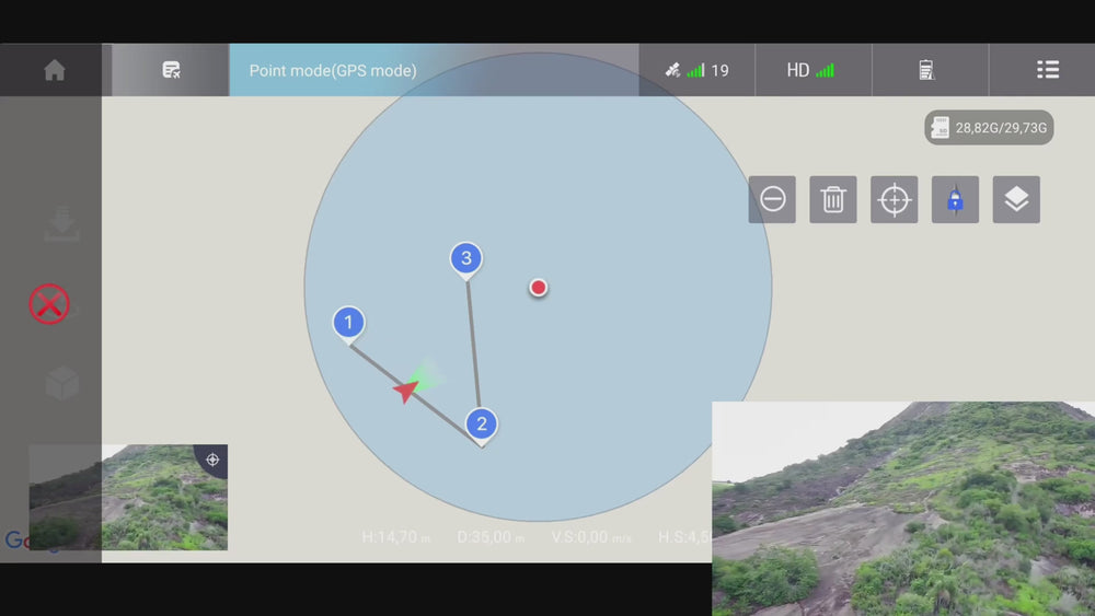Don't worry, if your adventures have taken you too far, our solution for a safe return is simple: press the return button and the drone will return and land on the runway with ease.