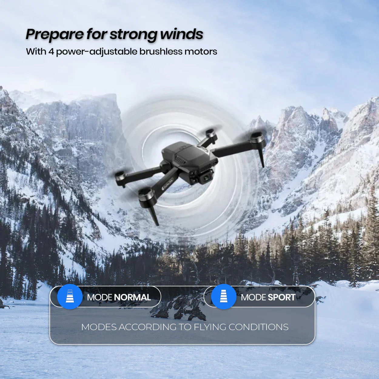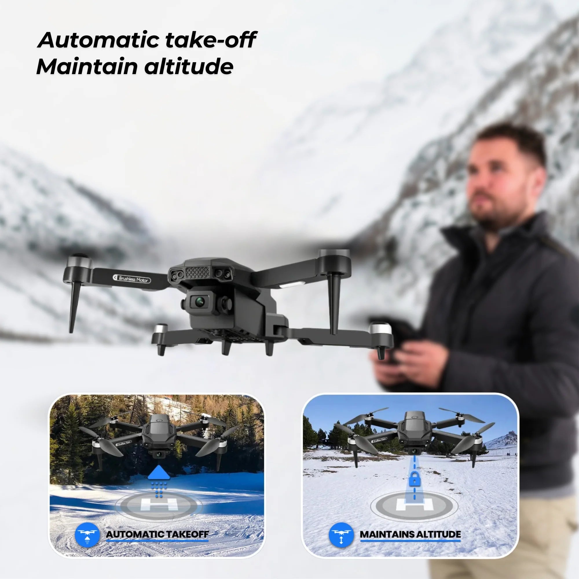 Quickly progress from beginner to expert with the Aeropro drone's automatic takeoff feature for added safety. Without experience, takeoff can quickly become complicated and dangerous.